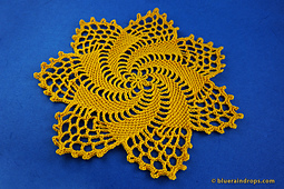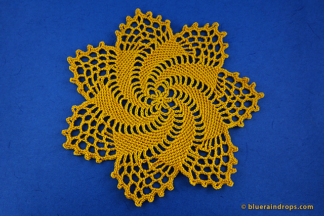 I crocheted my Pretty Pinwheel Doily with cotton thread size 5 and a 2 mm crochet hook. Its size is 20 cm (about 8 inches) in diameter.