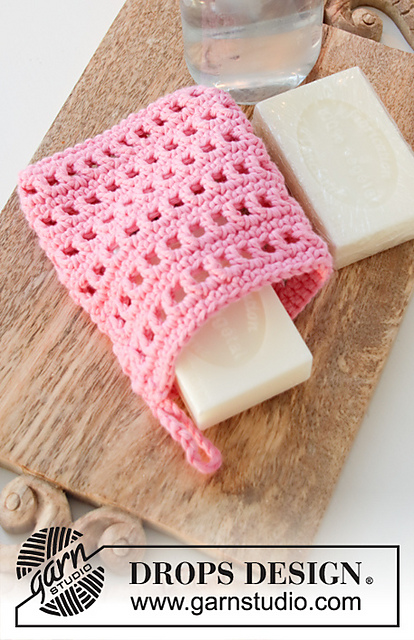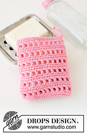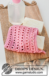 **Crocheted pouch for soap, or tawashi in DROPS Paris with lace pattern. The piece is worked bottom up.**