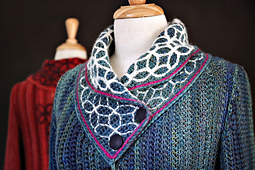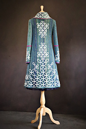 Embroidery extends up the Back Piece, both Front Pieces, Collar and Cuffs and this is the most challenging part of the design. Swatching is ESSENTIAL instructions are included to practice the embroidery technique before attempting the full coat.