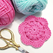 I made my scrubbies with Scheepjes Sunkissed (100% Cotton, 50g / 170m) and Scheepjes Cotton 8 (100% Cotton, 50g / 170m) and crochet hook 3.0 mm. About 2.5 g of yarn is needed for one scrubbie.