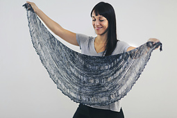 Storm uses just one skein of precious fingering weight yarn. It features dramatic dropped stitches and short rows that give this pattern a de-constructed look while also giving you a bigger shawl with the same yardage.
