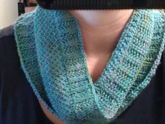 Cowl is crocheted flat and sewn together at back with mattress stitch. You can make yours longer/shorter by adding or decreasing rows and wider or narrower by increasing or decreasing the beginning chain.