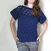 The Star Cluster Tee is crocheted in two pieces and sewn/crocheted together. The sleeves are crocheted directly onto the tee. In the pattern you will find instruction on how to easily adjust the length of the sleeves if you want them to be shorter or longer. The ribbings are crocheted on as you go.