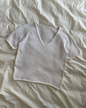 The white Cumulus Tee is knitted in Tynn Line by Sandnes Garn in the color Kitt \[1015\].