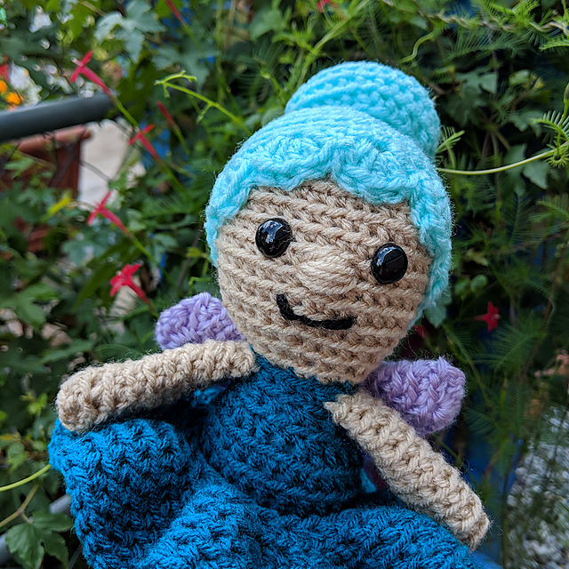 Flit the Fairy is 10 inches tall when made with worsted weight yarn.