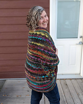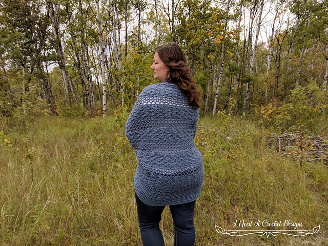 As I was making the Aerwyna Blouse, I simply fell in love with the stitch pattern. The alternating shells, along with the lacy stitches really makes the piece look like rippling water. I am very happy that I was able to incorporate this lovely stitch pattern into a cocoon shrug.