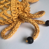 You'll need a small amount of DK cotton yarn, a 3.5mm hook and two wooden beads with large holes.