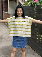 This over size crochet top is a simple two panel project. It's beginner friendly and easy to follow along for all levels.
