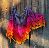 A relaxing 2-row crochet shawl with an easy shell pattern. One skein of your favourite fingering weight gradient yarn, is all that is needed to make this light and lacy triangle shawl, and only 2 ends to weave in. An easy make using basic stitches so you can relax and crochet!