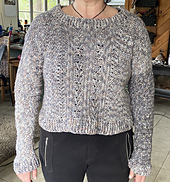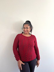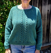 The inspiration for this sweater comes from rich textural effects found in gansey sweaters. The texture stands out against solid color and a variety of stitches maintain the crocheter’s interest throughout the project.