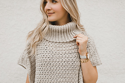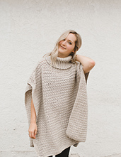 This poncho is worked in 3 pieces: 1 cowl, 1 front panel, and 1 back panel. These pieces are assembled and sewn up at the end. There is a photo included to help guide you when sewing the cowl neck on to the front and back panels.