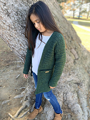 My youngest daughter has been asking me to make her a new crochet cardigan for a while now. In August, when we went shopping for new clothes for school, she found a simple, grey cardigan that she loved. I purchased it for her, but it’s so thin and won’t be nearly warm enough for our frigid winters. I love the simplicity of the store bought cardigan, the simple shape, classic fit, and pockets. Pockets were a request from Claire. This is where inspiration for the Aurora Cardigan came from.