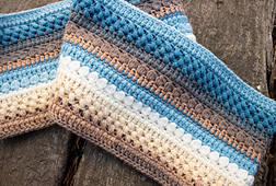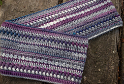 The original Autumn Skies Infinity Scarf has a width of 18cm and length of 160cm. The pattern is adaptable to any length using stitches in multiples of 2.
