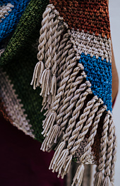 ***Let the Odyssey Wrap point the way to your next adventure!*** Bands of vibrant color make up this chevron linen stitch oversized scarf, crocheted in Bloomsbury DK. The twisted fringe sways as you move, adding a playful bounce to your travels.