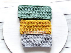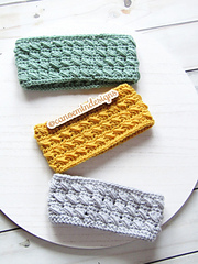 Quick & easy ear warmer pattern with lots of texture. The pattern is written using worsted weight yarn in 3 sizes.