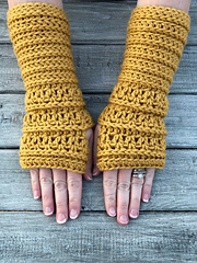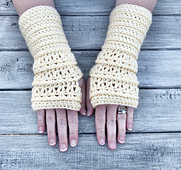These fingerless gloves are a quick make. The cuff is worked in rounds instead of vertically, so it gives them a different look and saves a lot of time.