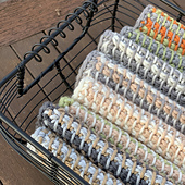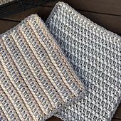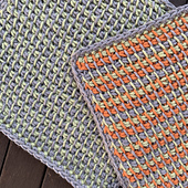 This fun and modern set of two striped dishcloths are worked in Tunisian Crochet Simple Stitch. Color changes are made on the return pass, which gives the fabric a woven, homespun look. A simple single crochet border is then added to finish it off.