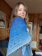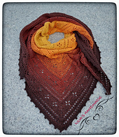 The filet work is yarn sparing, so a good sized shawl can be made from one graduated colour change yarn cake.