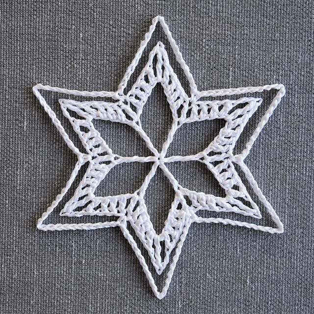 This pattern includes written instructions only and photo tutorial on stiffening snowflakes. There are no charts.