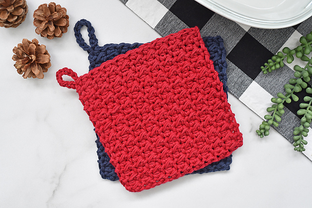 -Detailed instructions for a 7" x 7" pot holder/hot pad