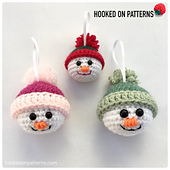 **This crochet pattern is FREE to view online on my website here: https://hookedonpatterns.com/crochet-blog/free-crochet-snowman-baubles**