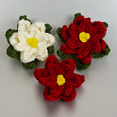 **Poinsettia:** This pattern includes instructions for making a double-layer poinsettia in red or cream, or adding a third layer in dark green (each layer is worked continuously, as a single piece, to minimise assembly).