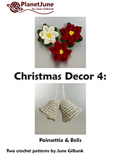 Two original crochet patterns: Poinsettia and Bells, from the Christmas Decor range by June Gilbank.