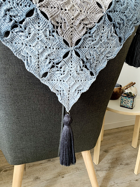 The Muyan Tile motif was designed using a 4 ply/fingering weight yarn. The finished size of the motif is 12cm square using a 3mm hook and 45m of 4-fach Lola. I am using the Swan Lake colour way from Yarnish.com.au
