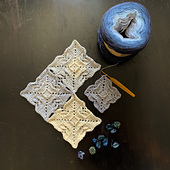The Muyan Tile Motif is a modern twist on a vintage lace stitch worked in a diamond tile from the centre out. The motifs are joined using a join as you go (JAYG) method, full instructions included. Muyan Tile Motif is an intermediate level pattern that requires focus, concentration and counting.