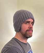 There are two versions of this hat, one is worked bottom-up, as the knitted hat is made, and the other is top-down. In the bottom-up version, the headband/earflaps are worked flat, from side to side in single crochet back loop only ribbing. Then the band is seamed and folded in half, and the crown of the hat is worked into the row ends, seamlessly, in the round. In the top-down version, after the crown is completed, the ribbing is worked JAYGo, seamed, folded up inside the hat, and hemmed.
