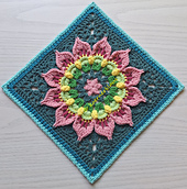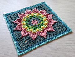 If made with DK yarn and hook size 4.5mm as my square it will measure 11 inch. With aran or worsted weight yarn and hook size 5.00mm it should measure 12 inch.