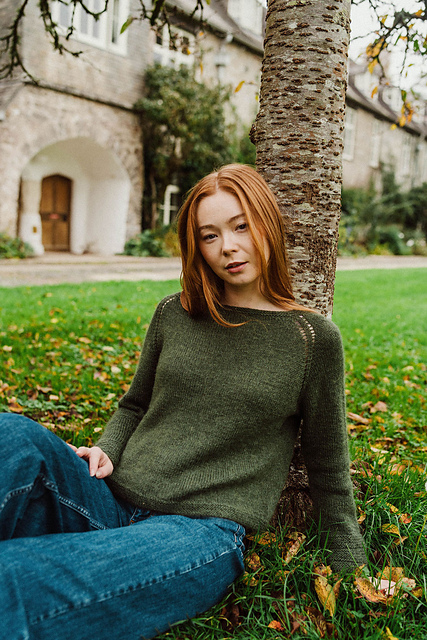 **Trescao** est un pull à manches raglan assez court (crop), dont le dos est légèrement plus long que le devant. Il est pensé pour être porté sur des robes, ou des jupes et pantalons à taille haute.