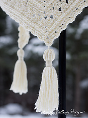 The shawl pictured is 72" wide by 30" long. You can make yours wider or shorter based on how many repeats you do.