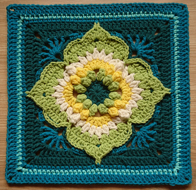If made with DK yarn and hook size 4.5mm as my square it will measure 11 inch. With aran or worsted weight yarn and hook size 5.00mm it should measure 12 inch.