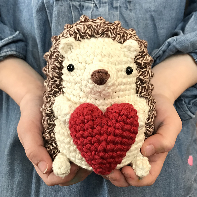 This hedgehog is sweet and round...and softer than the real thing! He's the perfect Valentine's Day gift. You'll love the amigurumi pattern - the hedgehog body is crocheted in the round and the spines are worked in rows and then added to the body.