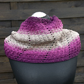 This so called möbius loop is worked in the round inside out. The double gradient forms automatically from the single gradient yarn. The loop has a möbius twist, which means it can‘t be layed flat (see below).